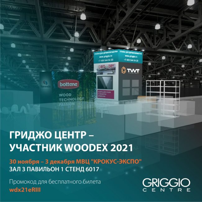 Приглашаем посетить стенд нашего представителя – компанию «Гриджо Центр» на выставке WOODEX-2021 в Москве